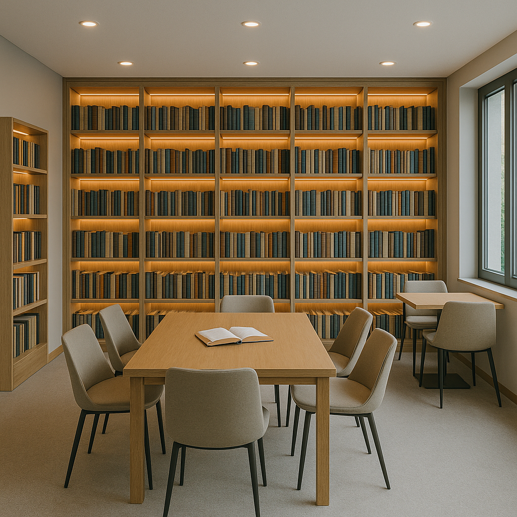 A hangulatos könyvtár a csendes elmélyülés és a közös beszélgetések tere. Válogatott könyvek, kényelmes olvasósarkok és időnként beszélgetős előadások várják azokat, akik szeretnek olvasni, tanulni vagy egyszerűen csak megpihenni egy jó könyv mellett.