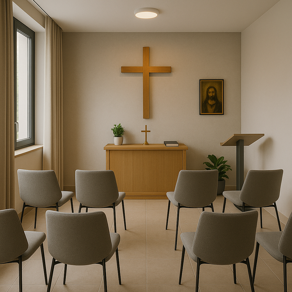 A csend és elmélyülés helye, ahol mindenki megtalálhatja a lelki békéjét. Az imaszoba nyitott minden felekezet számára, és lehetőséget ad az egyéni elvonulásra vagy közös imádságra – a hit és a megnyugvás harmóniájában.
